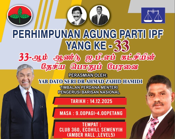 ஐபிஎப் கட்சியின் 33ஆவது தேசிய பேராளர் மாநாடு: டிசம்பர் 14ஆம் தேதி நடைபெறும்