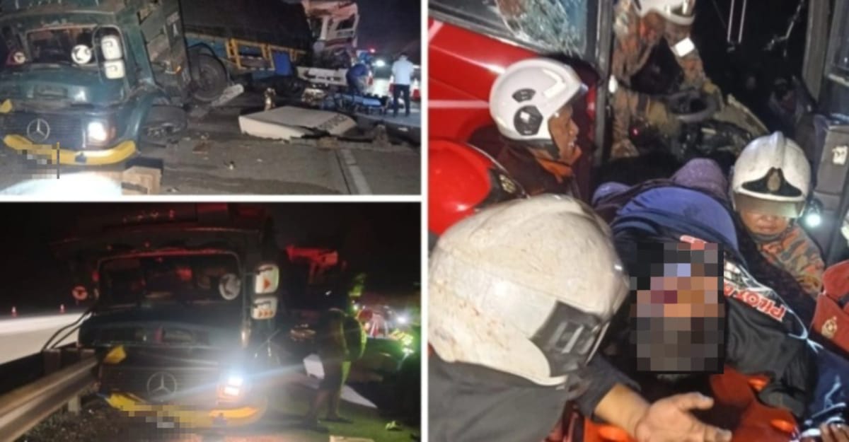 பிளஸ் நெடுஞ்சாலையில் விரைவுப் பேருந்து, இரண்டு லோரிகள் உட்படுத்திய விபத்தில் 31 பேர் பாதிப்பு
