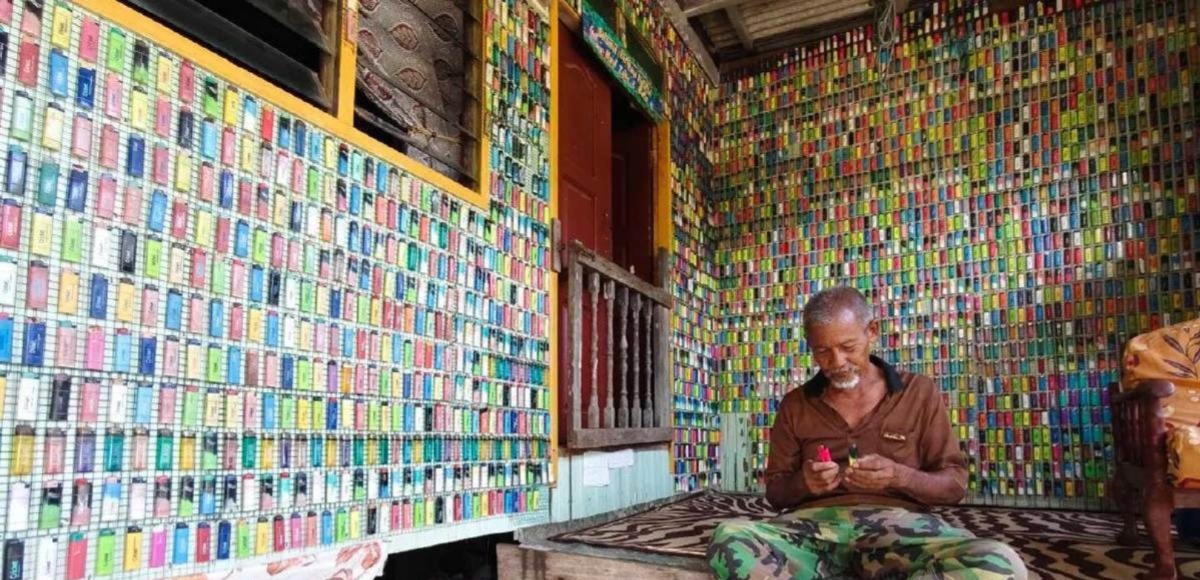 குப்பைகளை கலைகளாக மாற்றிய முதியவர்; லைட்டர்களால் சுவர் அலங்காரம்