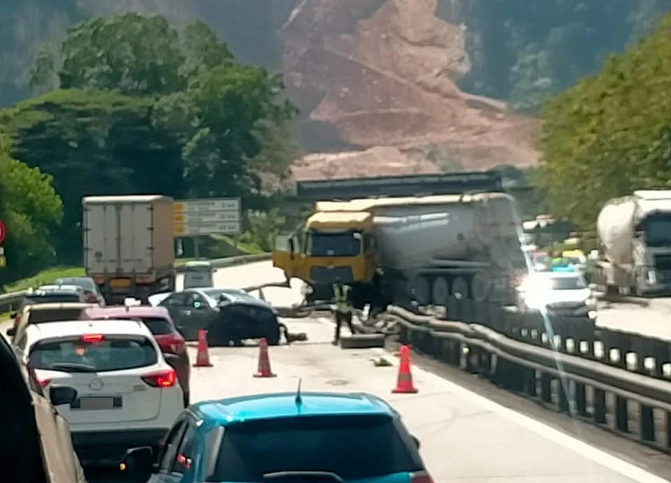 மூன்று கார்கள் மோதி டேங்கர் லோரி விபத்துக்குள்ளானதால் 20 கி.மீ. நீளத்திற்கு போக்குவரத்து நெரிசல்