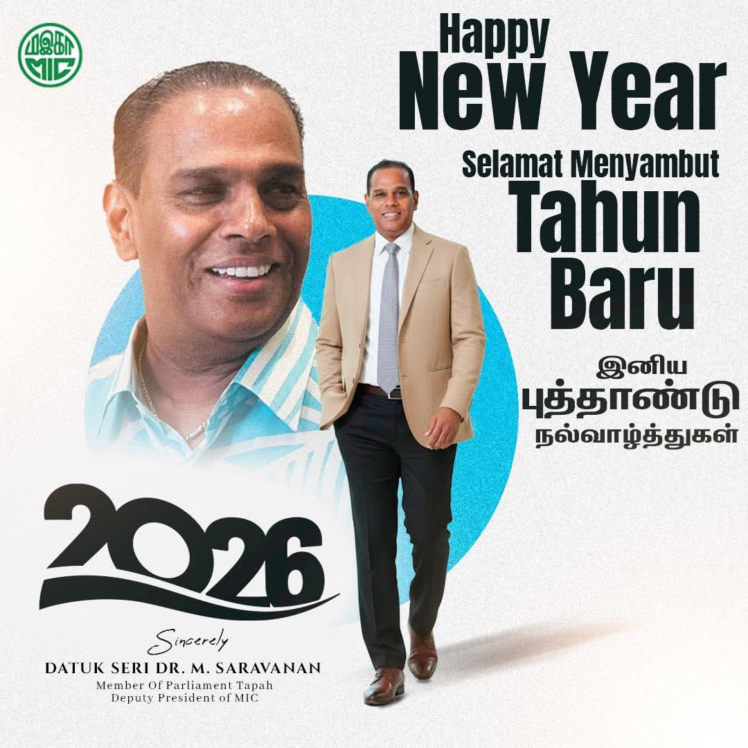 2026 அனைவருக்கும் சாதனைகள் ஒளிரும் ஆண்டாக அமையட்டும்: டத்தோஸ்ரீ சரவணன் வாழ்த்து
