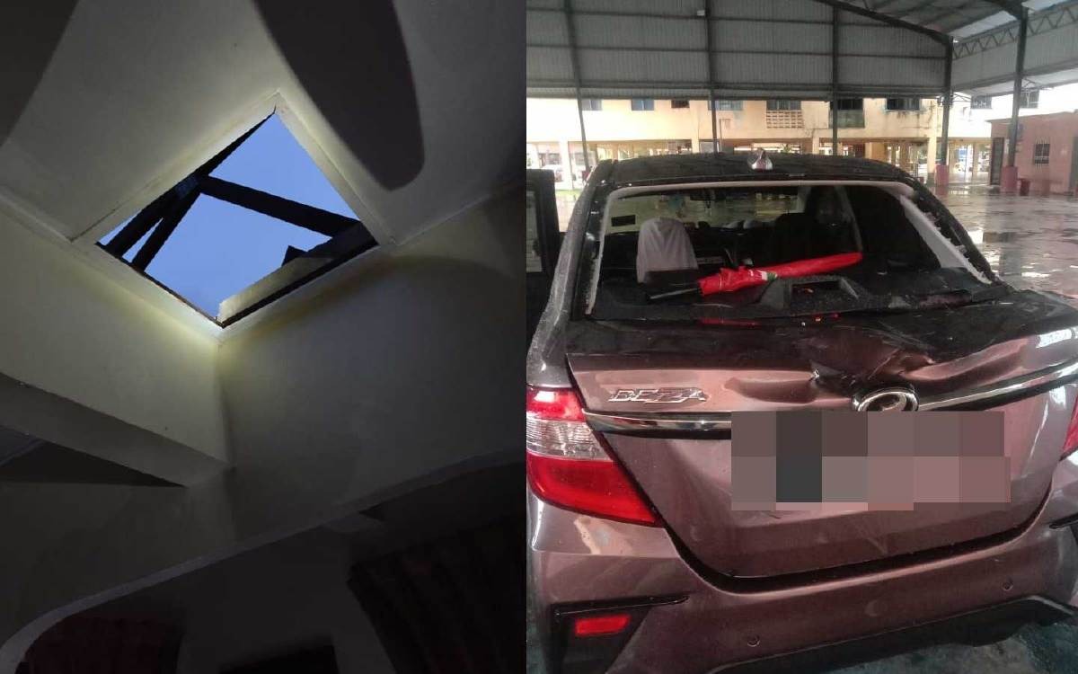ஜொகூரில் சுழற்காற்றின் சீற்றம்: மேற்கூரைகள் பெயர்ந்து விழுந்ததில் 10 கார்கள் உருக்குலைவு