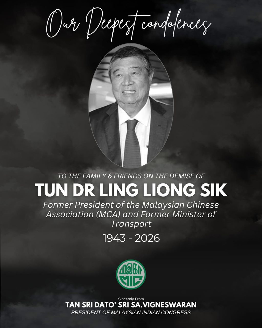 மறைந்த துன் லியோங் சிக் பெரும் உறுதிப்பாடு கொண்ட ஒரு அரசியல்வாதி: டான்ஸ்ரீ விக்னேஸ்வரன் இரங்கல்