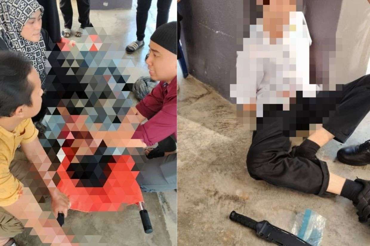 மாணவனின் கைகளில் இருந்து கத்தி, கெராம்பிட் என இரண்டு ஆயுதங்களை போலிசார் கண்டுபிடித்தனர்