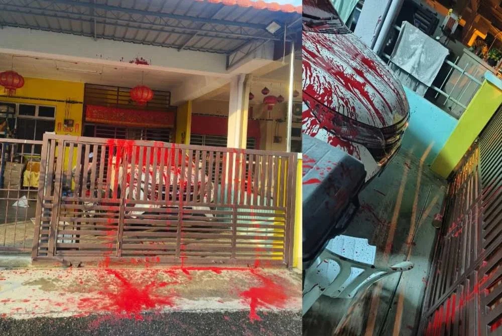 தவறான முகவரியால் நேர்ந்த விபரீதம்: அப்பாவி குடும்பத்தின் வீடு, கார் மீது சிவப்புச் சாயம் வீச்சு
