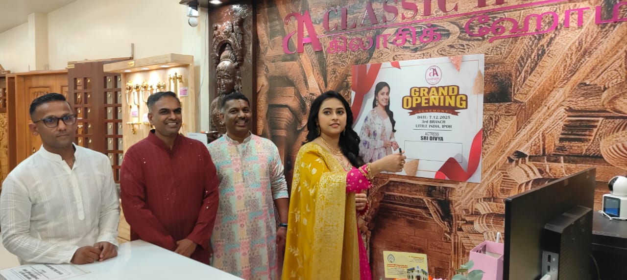 ஈப்போவில் aA கிலாசிக் ஹோம் 3 வது கிளை நிறுவனத்தை நடிகை ஸ்ரீ திவ்வியா அதிகாரப்பூர்வமாக திறந்து வைத்தார்