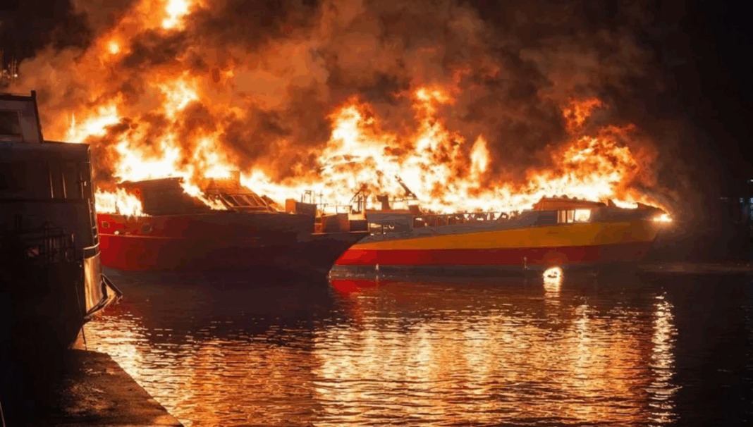 புக்கிட் மாலுட் கப்பல் தளத்தில் தீ விபத்து: 3 பேரிகள் முற்றிலும் சேதம்