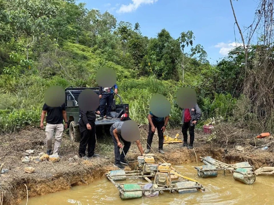 சட்டவிரோத தங்கச் சுரங்கத்திற்கு பயன்படுத்தப்பட்ட பல்வேறு உபகரணங்களை போலிஸார் பறிமுதல் செய்தனர்